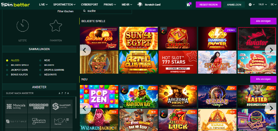Spinbetter bietet sichere Übertragungsoptionen. Ihr Land bestimmt die verfügbaren Zahlungsmöglichkeiten. Bitte beachten Sie, dass die Auszahlungsoptionen möglicherweise nicht über dieselbe Bank verfügbar sind, die Sie für die Einzahlung verwendet haben. In diesem Fall müssen Sie eine alternative Zahlungsmethode finden, die das Online-Casino akzeptiert.