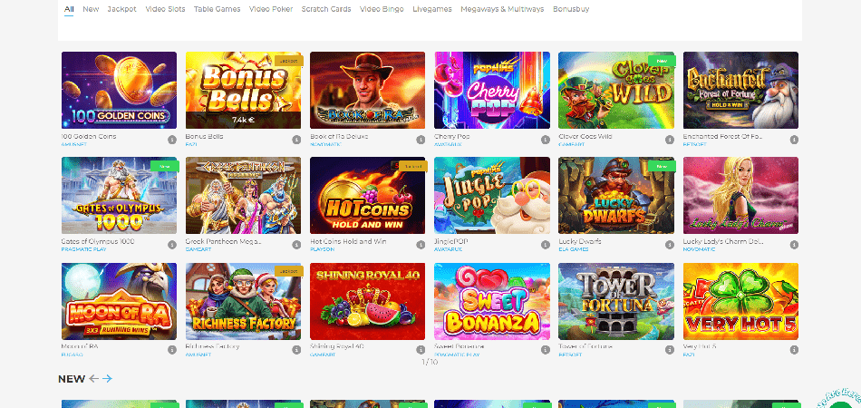 Slots sind mit fast 3000 Titeln das größte Segment. Anstelle von Spielautomaten können Sie auch Rubbellose, Video-Bingo und Video-Poker spielen. Spieler können aus vielen Roulette-, Blackjack- und Baccarat-Varianten wählen. Live-Casinos akzeptieren Spieler, die Live-Dealer bevorzugen.