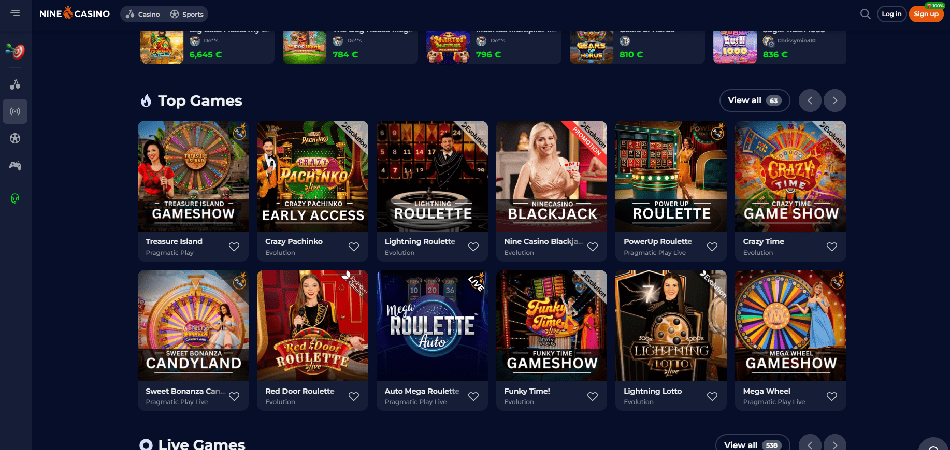 Nine Casino partners with top-tier game developers such as Yggdrasil, Pragmatic Play, Red Tiger, NetEnt, Evolution, Thunderkick, ELK Studios, BetSoft, Booongo, Spinomenal, NoLimitCity, Belatra, Playson, Platipus, TrueLab, Habanero, Amatic, GameArt, Bgaming, and others. This ensures a high-quality gaming experience with a wide variety of options.