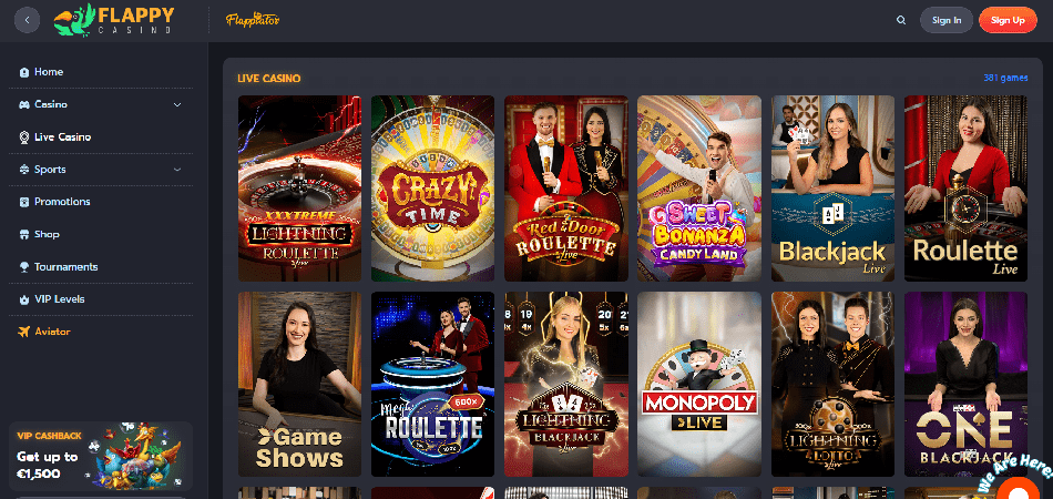 You will be overwhelmed with options when it comes to choosing which game to play first, thanks to the extensive library. Flappy Casino has all your favourite games, whether you like slots, table games, or crash games like Spribe's Aviator.