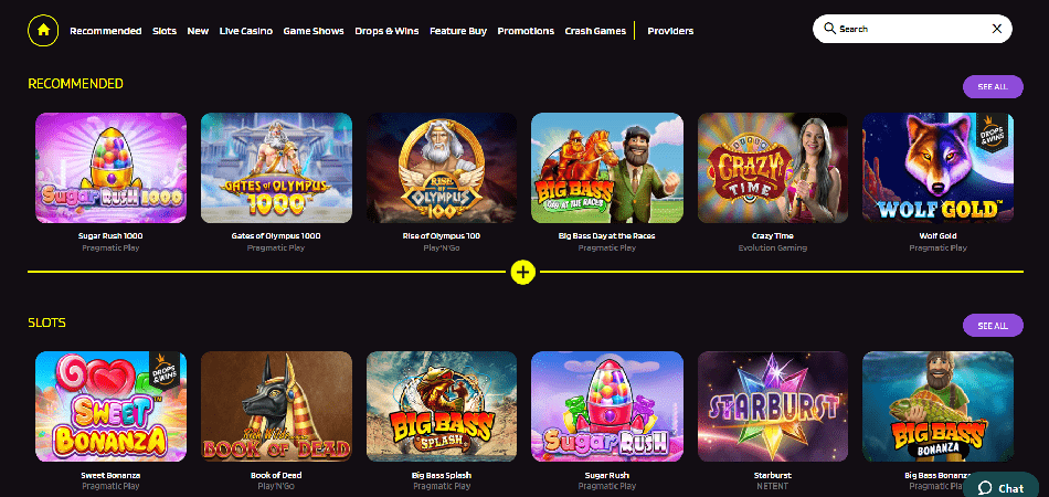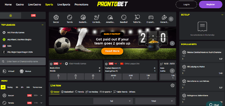ProntoBet offers almost three thousand games categorized into popular, new, slots, classic slots, live casino, and table games. Players can also sort games by provider or use the search function to find specific titles.
