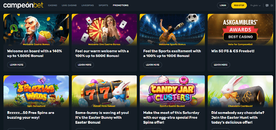 Campeonbet tilbyr live chat og e-poststøtte på flere språk, inkludert engelsk, spansk, portugisisk, tysk og finsk. Støtte er tilgjengelig fra kl. 09.00 til kl. 01.00 lokal tid, noe som sikrer at spillere kan motta assistanse det meste av dagen.